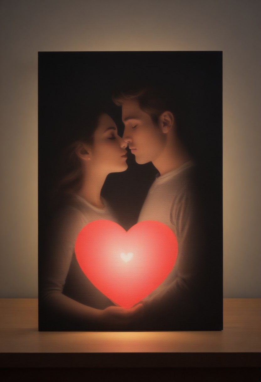 chico pintando cuadro para chica, es un regalo para san valentin. Hay un corazon en el cuadro. estilo fotografia. gran contraste de luces y sombras. Estilo vintage