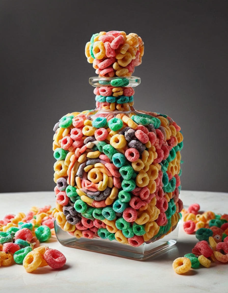 A classic luxury perfume made of fruit loops <lora:FruitLoopStyle:1>