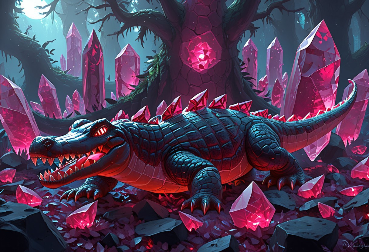 rp_slgd, shards of ruby gem crocodile in a crystal shard swamp
