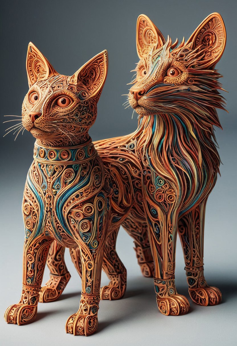 WhiteMold award winning 3d printingillustration of a funky toydog and a funky toy cat, intricate details, beautiful composition