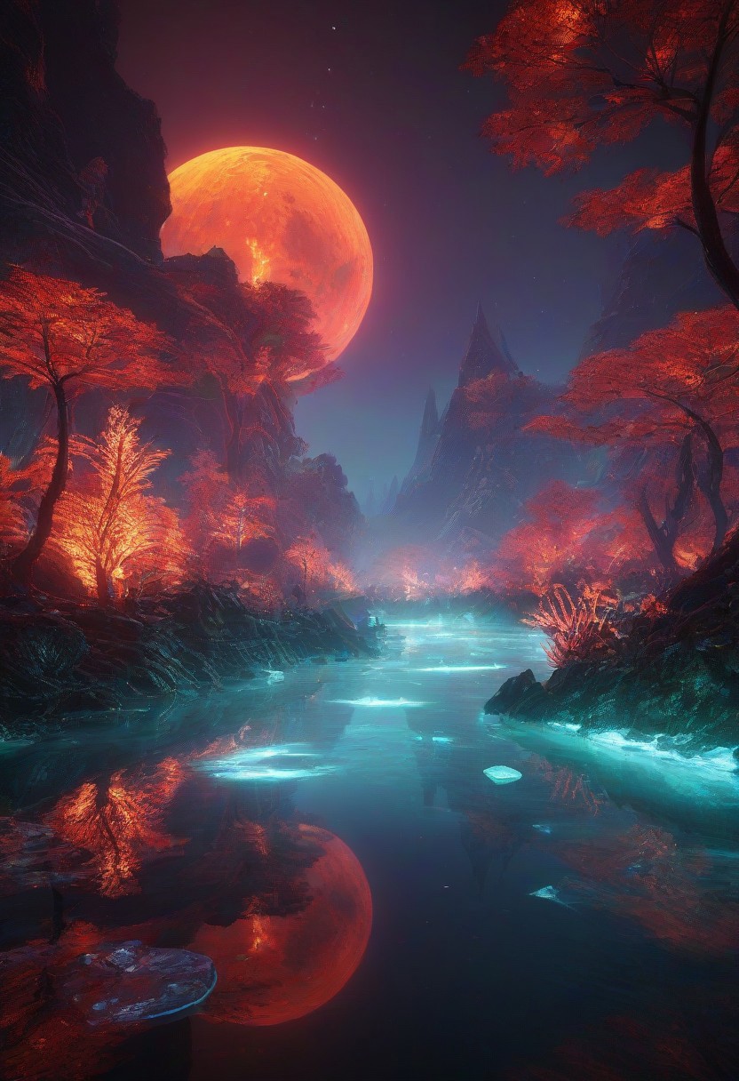 Ultrarealistic. sharp focus, dynamic lighting. play of light, reflection, refraction, Raytracing, Ultra detailed. Alien themed. Alien scenery. alien scenery background. alienworld. An alien fire dragon surrounded by ice.enchanting, cosmic, celestial, ethereal, vibrant flora, magical, luminous, serene, dreamy, radiant, bioluminescent, intricate details, surreal, enchanted forest