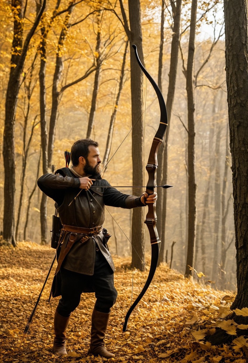 (hunting_recurve_bow:1.6), (composite_limbs:1.5) from horn and wood, (animal_skin_grip:1.4), (fletched_arrows:1.3) with obsidian_heads, (forester:1.4) in leather_armor stalking deer, (autumn_forest:1.5) with golden_leaves, soft_natural_lighting, ultra_detailed_textures, 8k, historical_reference, by Piotr Jabłoński
