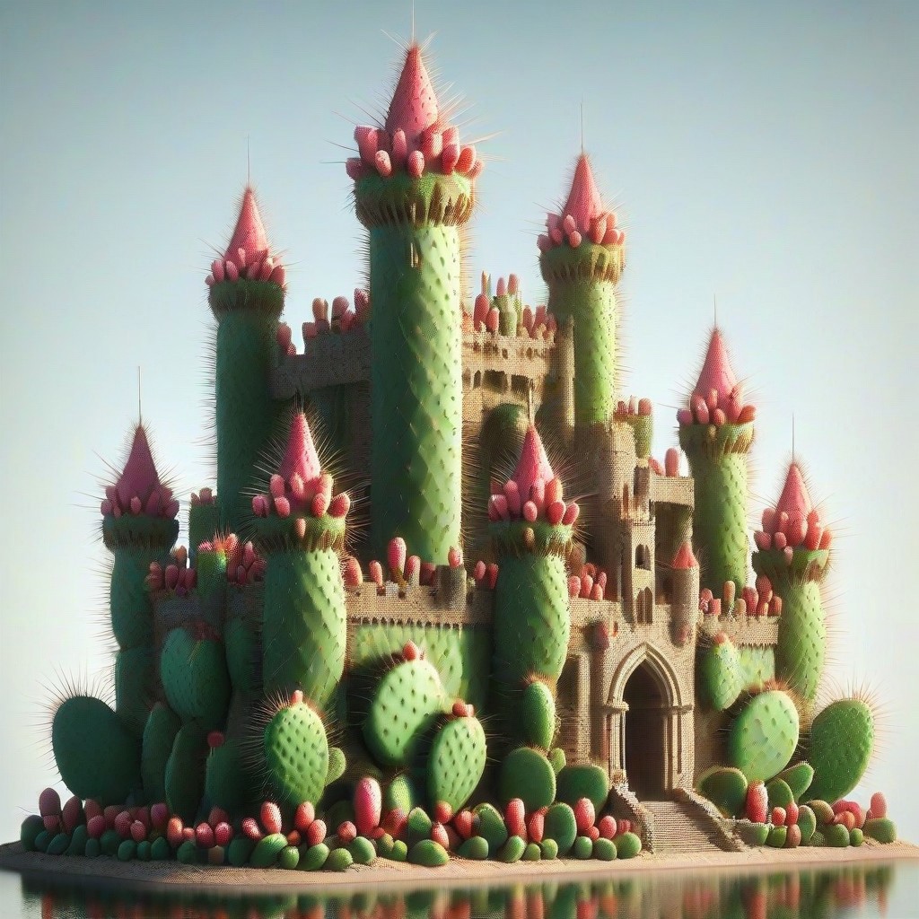 Castle, bif castle, tech <lora:Prickly Pear Style v1:1>, Prickly Pear Style,