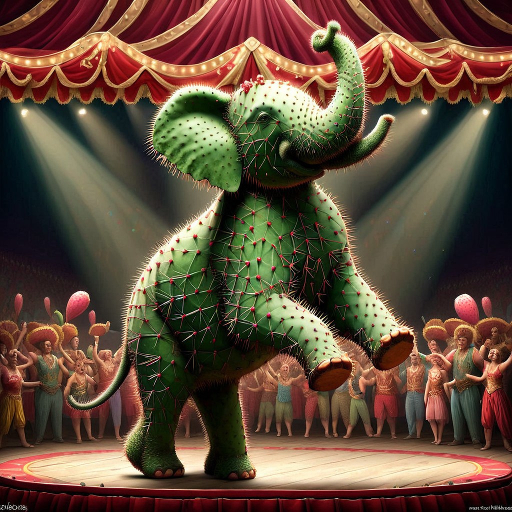 a tap-dancing elephant at the circus<lora:Prickly Pear Style v1:1>, Prickly Pear Style,