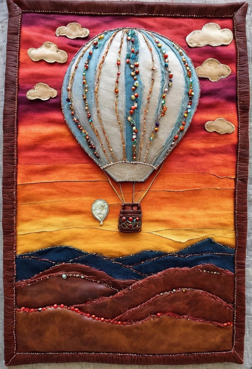 cs-l3ath3r, lifestyle photo, a ballon made out of leather, outside, flying, beautiful, sunset