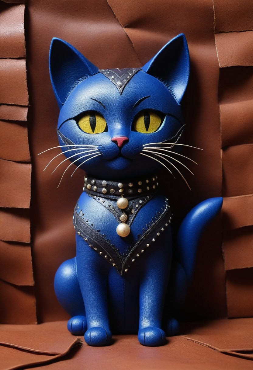 masterpiece,best quality,amazing quality,very aesthetic,high resolution,ultra-detailed,absurdres,newest,scenery,depth of field,scenery,volumetric lighting, beautiful, score_9, score_8_up, score_7_up, cs-l3ath3r, cat, cat made out of leather
