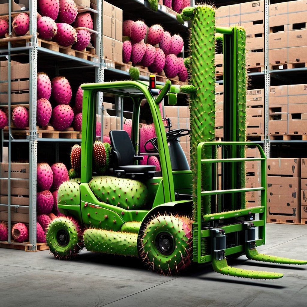 Forklift working the warehouse <lora:Prickly Pear Style v1:1>, Prickly Pear Style,