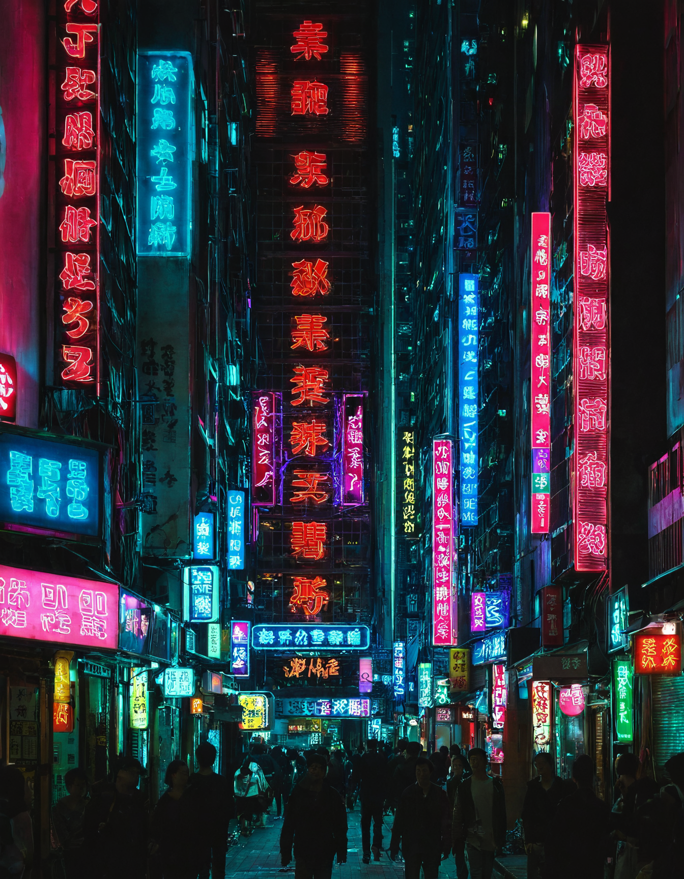 <lora:RokuSignHD:1>,rokusignhd,scenery,building,city,outdoors,cityscape,skyscraper,city lights,, a city street filled with lots of tall buildings at night time with neon signs on the buildings and people walking around [1]