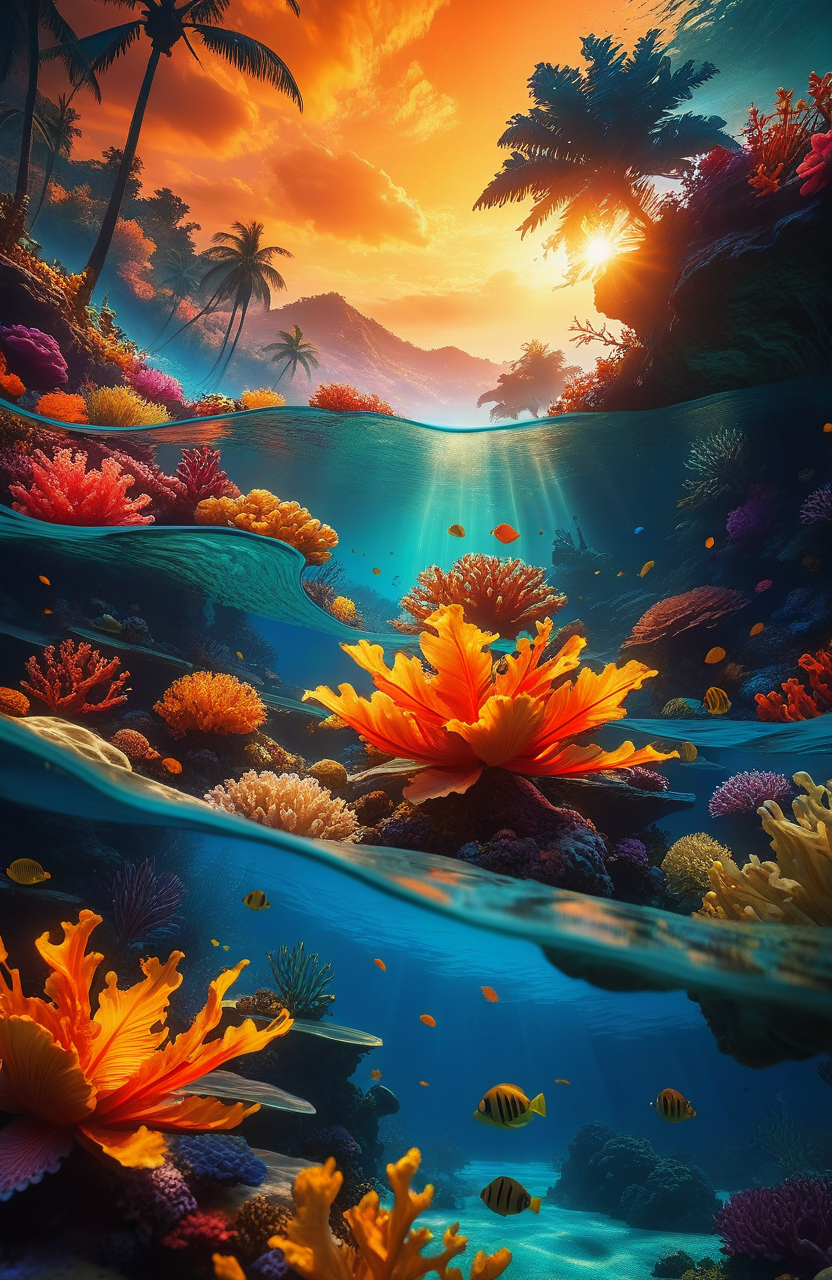 score_9,score_8_up,score_8,masterpiece,best quality,good quality,very aesthetic,colorful,8K,depth of field, trending on artstation,underwater,landscape in color,fiery background,simple,Underwater Tracking Shot, <lora:Dreamyvibes artstyle SDXL - Trigger with dreamyvibes artstyle:0.8>,Dreamyvibes Artstyle,<lora:quality1:0.8>,<lora:Vivid Midjourney mimic - XL SDXL v2.0:0.4>,