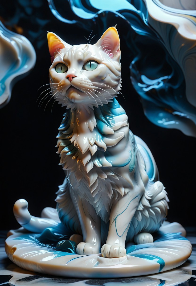 Ultrarealistic. sharp focus, dynamic lighting. play of light, Raytracing, Ultra detailed. (((Liquid Marble style))). A cat made of Liquid Marble.