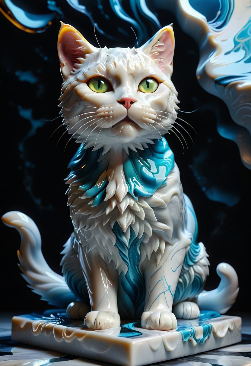 Ultrarealistic. sharp focus, dynamic lighting. play of light, Raytracing, Ultra detailed. (((Liquid Marble style))). A cat made of Liquid Marble.