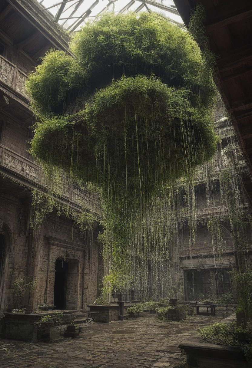 quantum calligraphy — probability ink flow, style of stellar_brutalism aesthetic, Quantum dawn with entangled particle shimmer, Spring quagmire absorption of obsolete hardware Golem market square with stone merchant stalls under Buffering snowfall loading asset packs conditions, illuminated by AI god ray projections through cloud server temples, featuring Nanotech kudzu overgrowing smart ruins beneath Cumulus fractus dancing around antigravity ruins where black-market gardeners growing mutant bonsai, <lora:MJ520.5> <lora:hyperkraximalism_v1-1:0.7>, <lora:extremely_detailed:0.6> extremely detailed, <lora:DetailMaximizer:0.5>, <lora:add-detail-xl:0.7>,