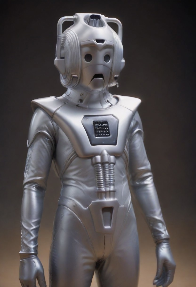 Isekai anime.focused,,cinematic long shot,sharp,sharp background,depth of field,(aperture of f/32(0.9)),sharp background,best quality,extremely_detailed, ,up_8,up_9,8k,master_class,masterpiece,real good,totally awesome. vibrant colors.master_class,masterpiece. Perfect beautiful and real good: Cyberman in latex. Dr. Who.