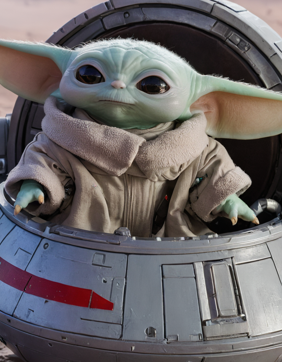 Grogu is piloting the spaceship <lora:grogu_realistic_xl_v1:0.8>