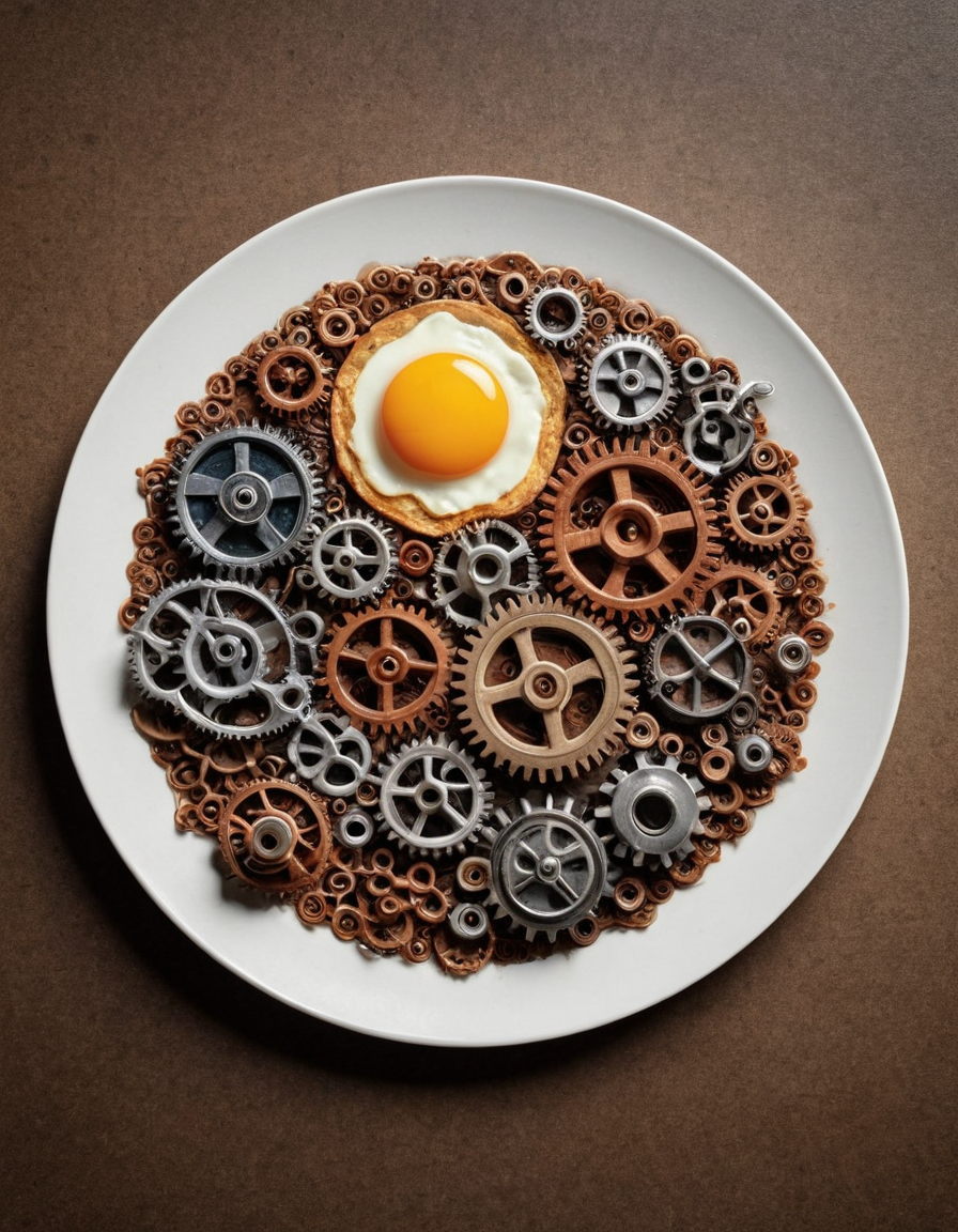 A plate of breakfast, but the breakfast is made of gears <lora:gearstyle:1>