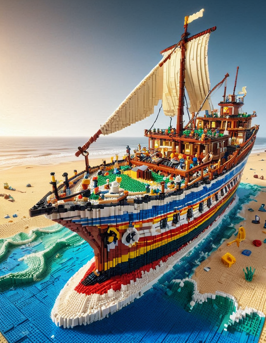 sea boat ocean beach made of legos, 64k <lora:Expert_Lego_set:1>