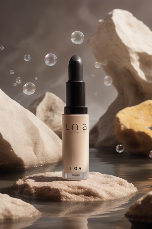 dark red lipstick, ,rock, water, reflect, no humans, depth of field, yellow background, scenery, still life (Product Photography) <lora:Product Photography:0.85>