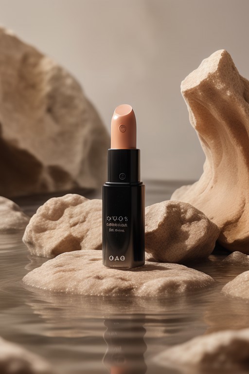 dark red lipstick, ,rock, water, reflect, no humans, depth of field, yellow background, scenery, still life (Product Photography) <lora:Product Photography:0.85>