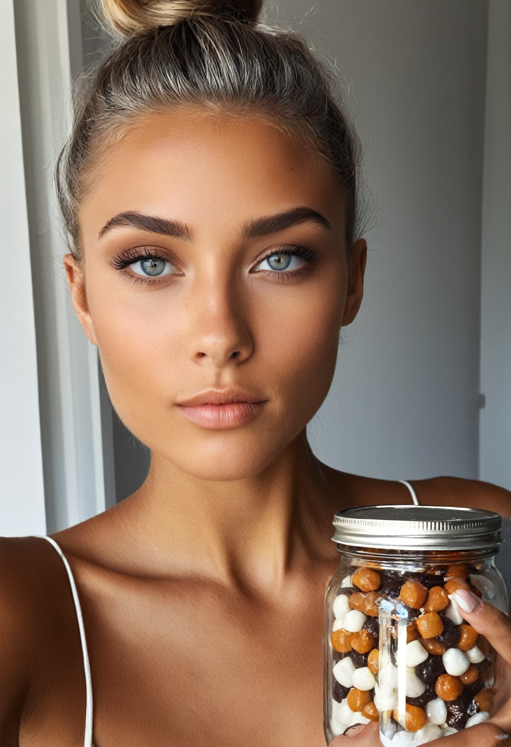 24 year old, supermodel, very skinny, petite, small breasts, Grey frohawk, Finnish real world location , caramel skin, grey eyes, fair skinned, best quality , RAW photo, subject, 8k uhd, high quality, photorealistic, resplendent , fair-skinned female, tanned, , dark-skinned, opulent , cosmic harmony, premium, Candy room with jars of sweets,, opulent , Samsung ST700, <lora:add-detail-xl:1>, first-class, <lora:selfieXLrd:0.8> selfie, 1girl, solo, realistic,