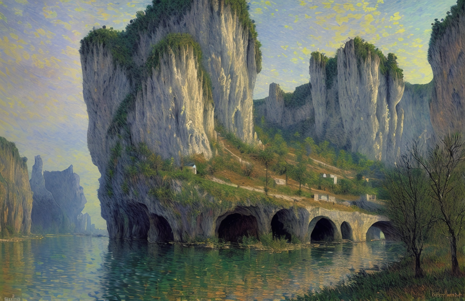 (impressionism:1.1), Cave/Karst , russian panel houses, (bob layzell:1), rural, a painting,scene painting,scenery, <lora:russian_panel_houses_v105:0.8>,