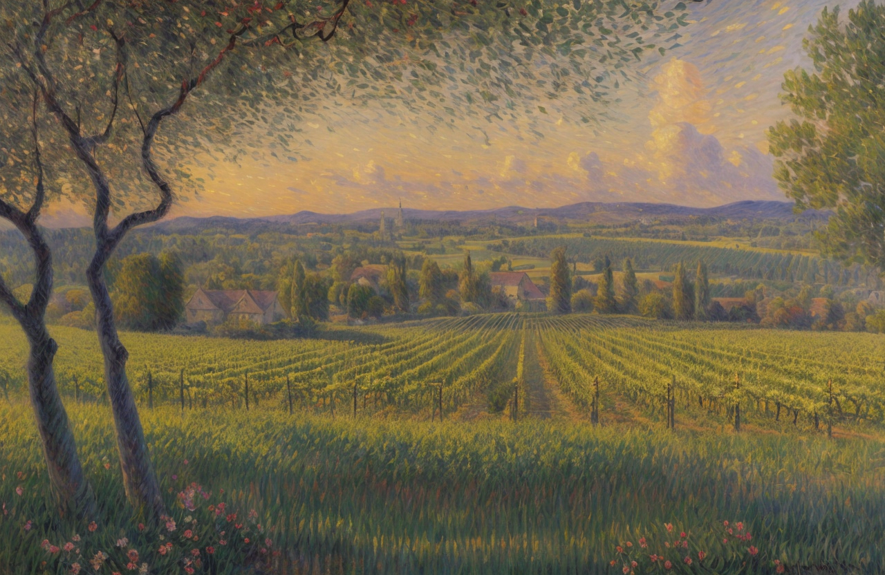 (impressionism:1.1), (bob layzell:0.6), estate ,plantation ,vineyard , scene painting,scenery,a painting,