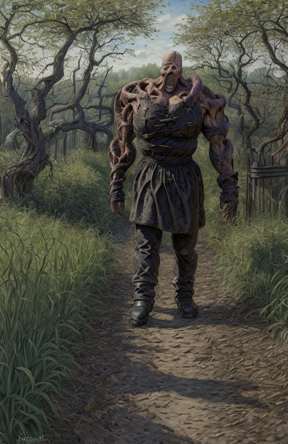 (Nemesis:1.1), arboretum ,yard ,hedgerow,bosque ,thicket ,farm , a painting,scene painting,scenery, <lora:Nemesis SD1.5 v1:1>,