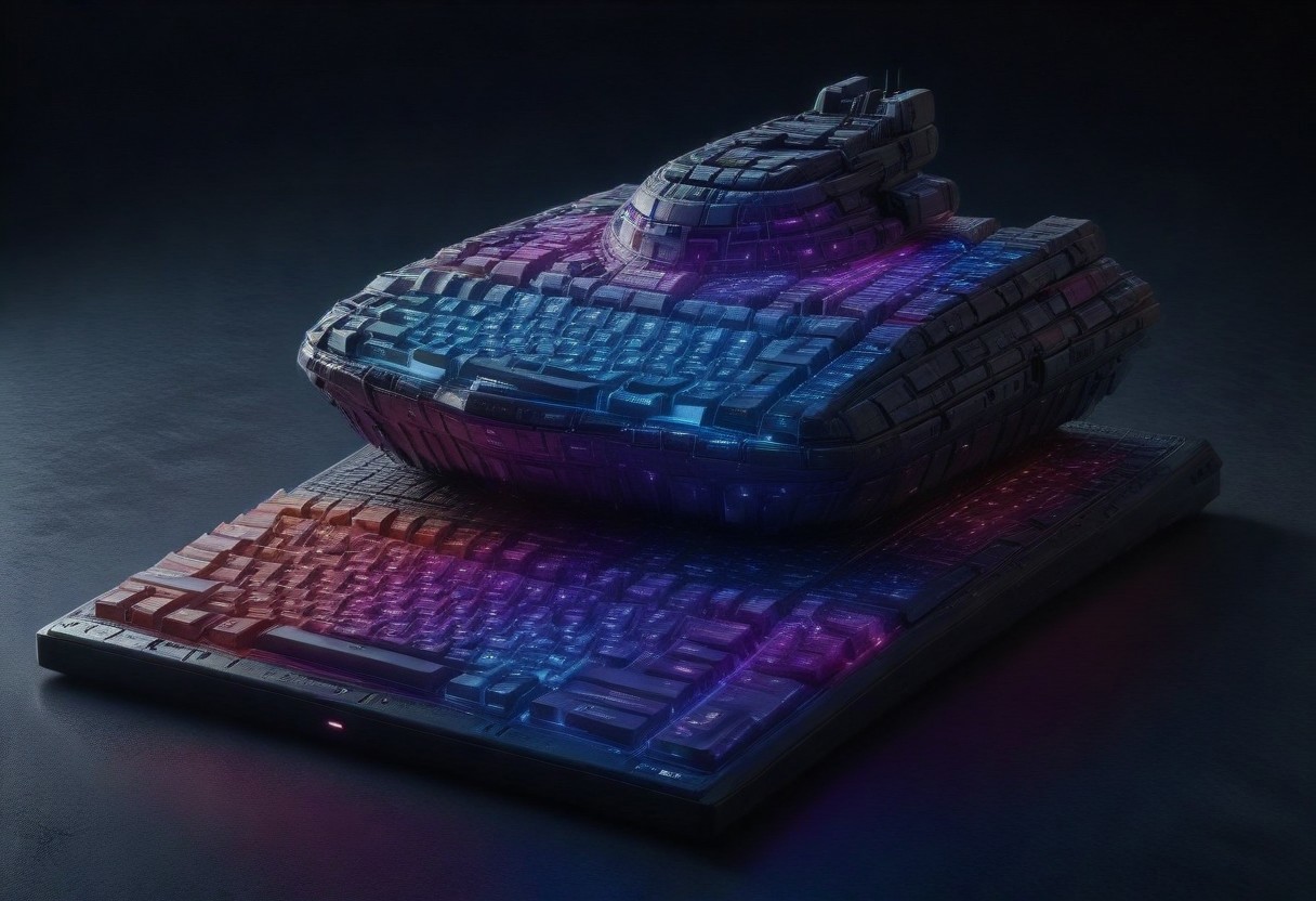 (Isekai anime style,manga,animw,best quality,,up_8,up_9,8k,master_class,masterpiece,real good,totally awesome.vibrant colors,perfect beautiful early morning light)l. The space ship's computer (with keyboard).