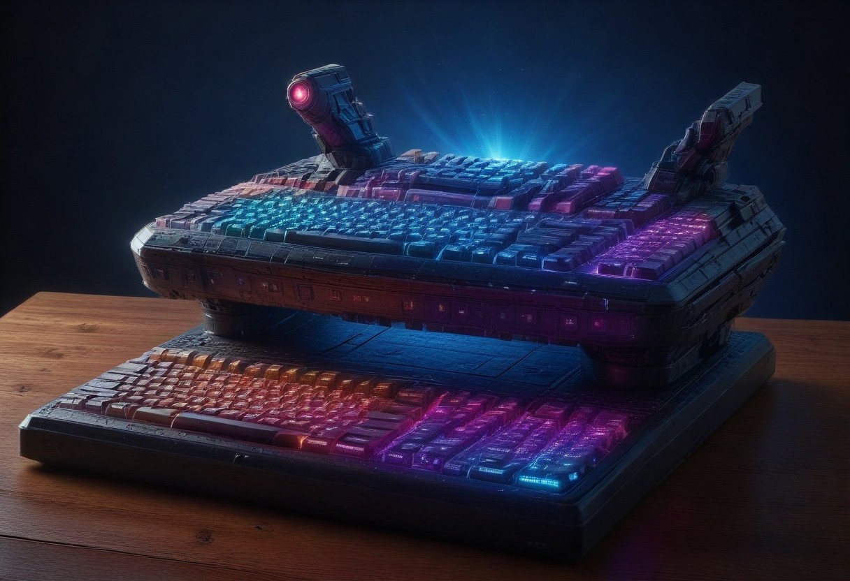 (Isekai anime style,manga,animw,best quality,,up_8,up_9,8k,master_class,masterpiece,real good,totally awesome.vibrant colors,perfect beautiful early morning light)l. The space ship's computer (with keyboard).