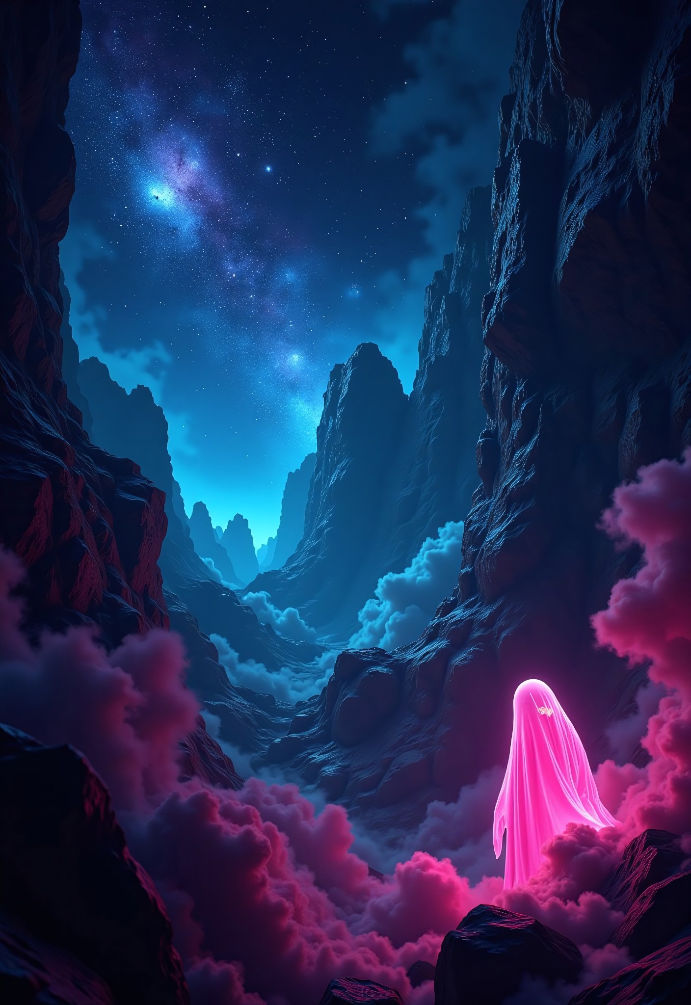 aidmaimageupgrader, a high quality digital image of Metagalactic Space Ghosts Battle at the Edge of Time, they glow at night