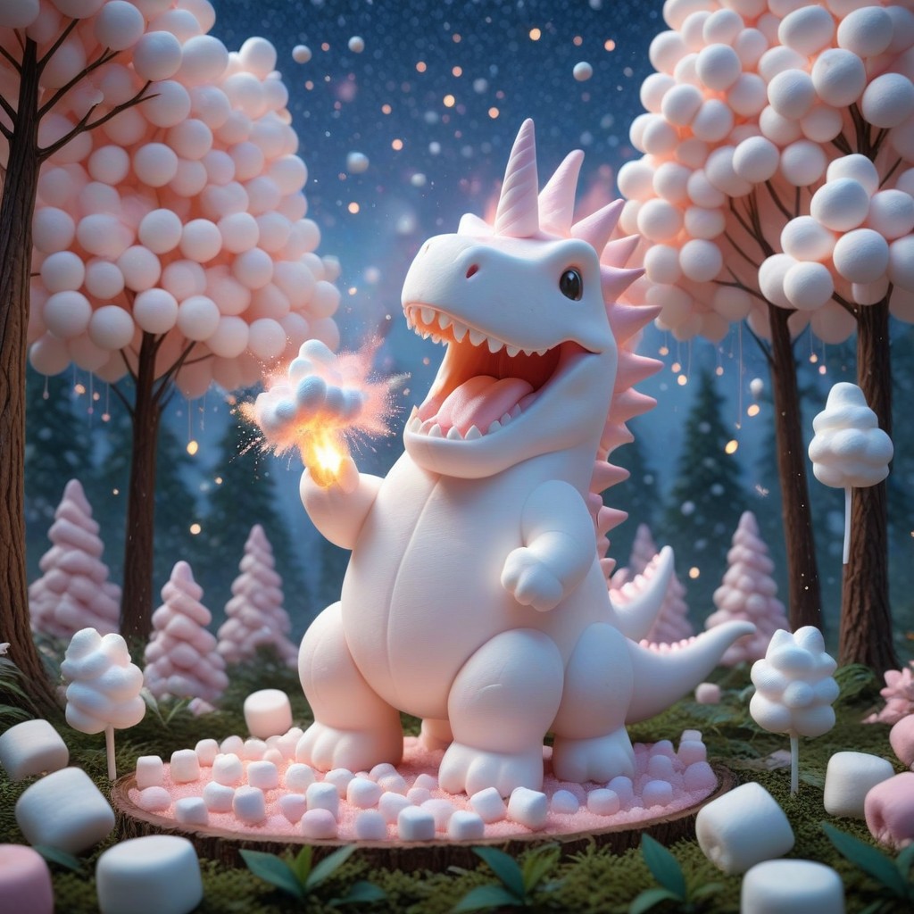 lazympos, anime artwork professional 3d model I've created a whimsical digital art scene for you. Imagine a world crafted entirely from fluffy, soft marshmallows: A towering marshmallow T-Rex stomps through a prehistoric marshmallow jungle, its roar sending shockwaves through marshmallow trees and causing sugar-coated meteor showers. <lora:The_world__marshmallows-000007:1.0000000000000002> <lora:TrendCraft_The_Peoples_Style_Detailer-v2.1A-3_12_2025-SDXL:0.8000000000000002>