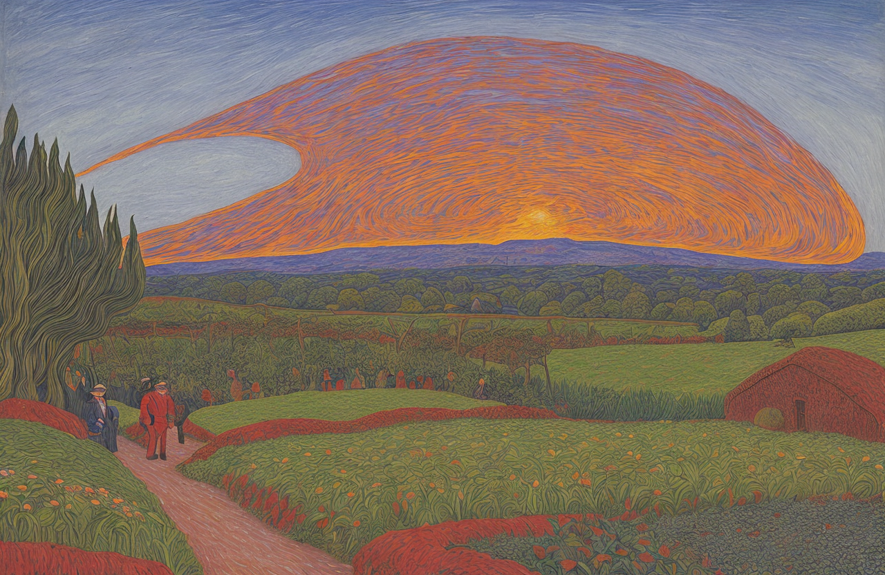 style of Henry Moret, garden ,field ,orchard , Lava Tube , scenery,scene painting,a painting,