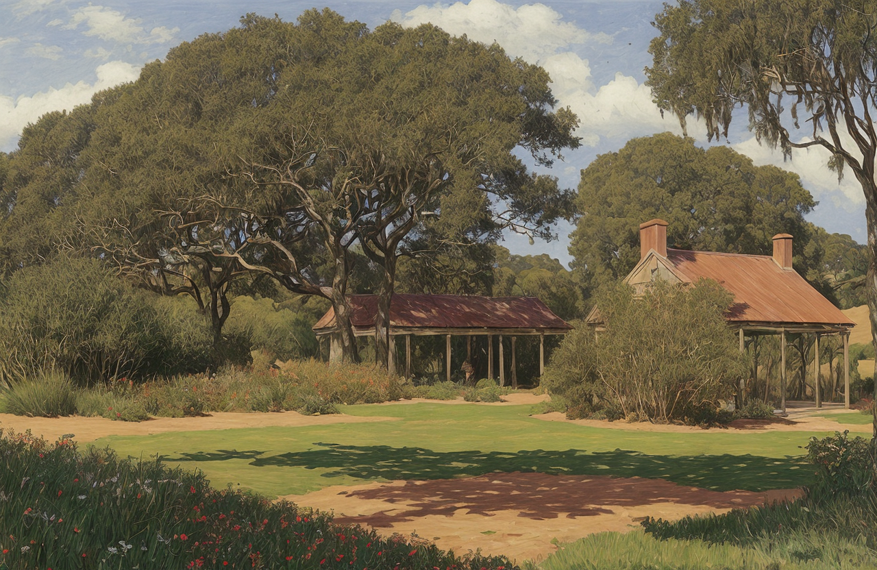 style of Henry Moret, arboretum ,plantation ,stand ,plot ,field ,ranch , Mesa,