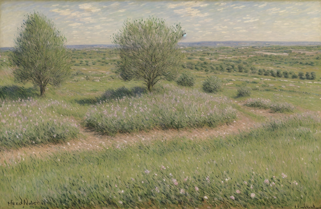 style of Claude Monet, hedgerow,yard ,plantation ,ranch ,coppice ,clump , Badlands ,
