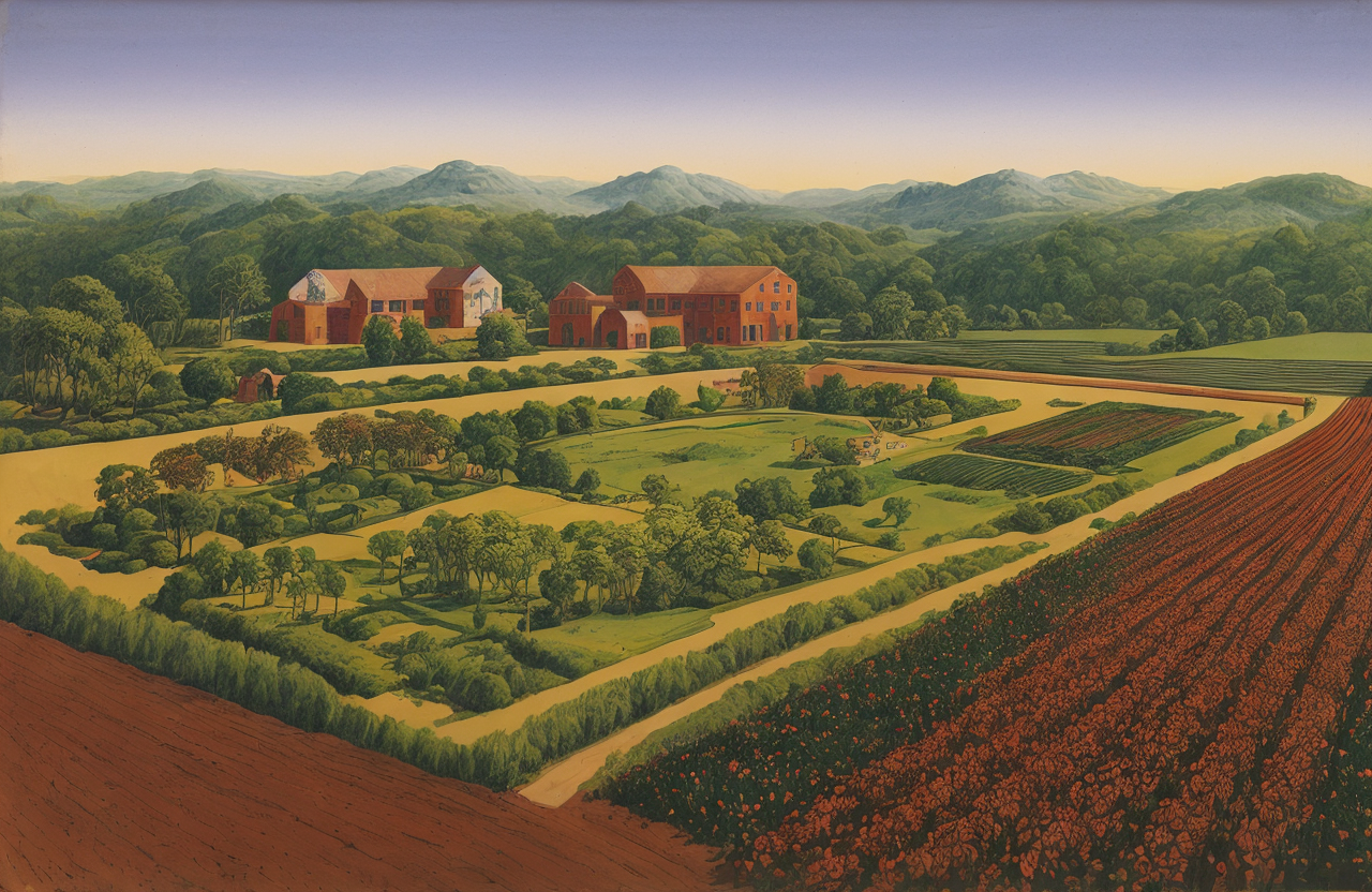 style of Roger Dean, farm ,hacienda ,arboretum ,parcel ,field , Farmland/Cultivated ,