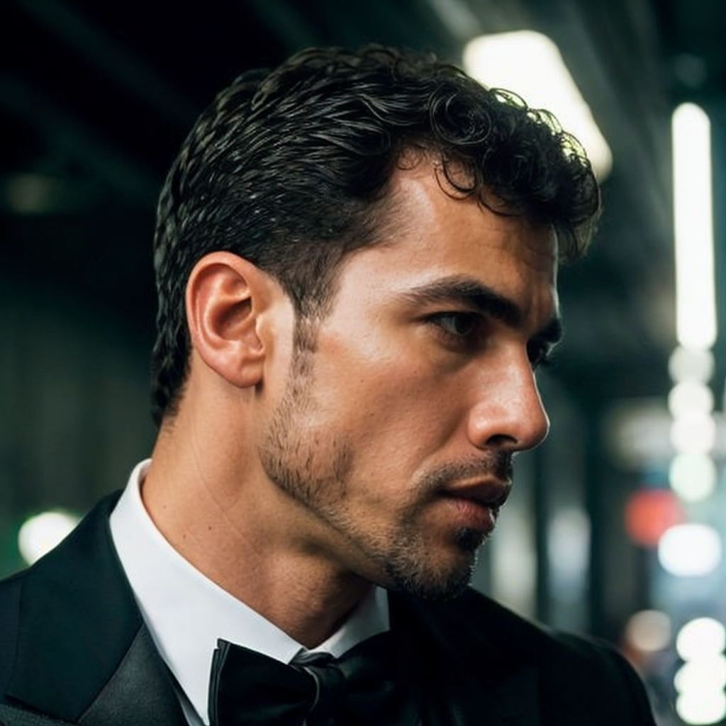 DSLR photo of davidortega person using a tuxedo.face side portrait.in blade runner.daylight.professional photography.high resolution.detailed photo.RAW.still film.f/16.uhd.hdr.4k <lora:davidortega_48150:1>