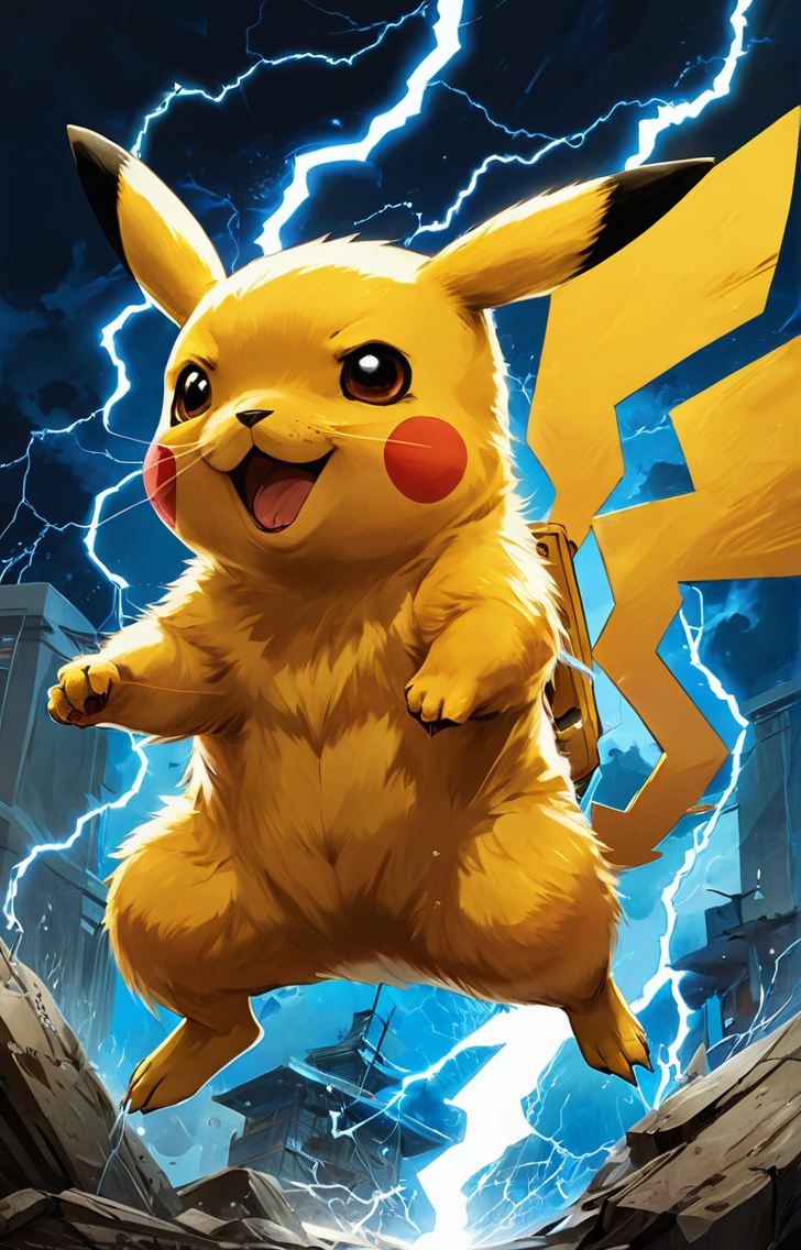 concept art of pikachu emitting thunder, highly detailed painting by dustin nguyen, akihiko yoshida, greg tocchini, greg rutkowski, cliff chiang, 4 k resolution, trending on artstation, 8 k