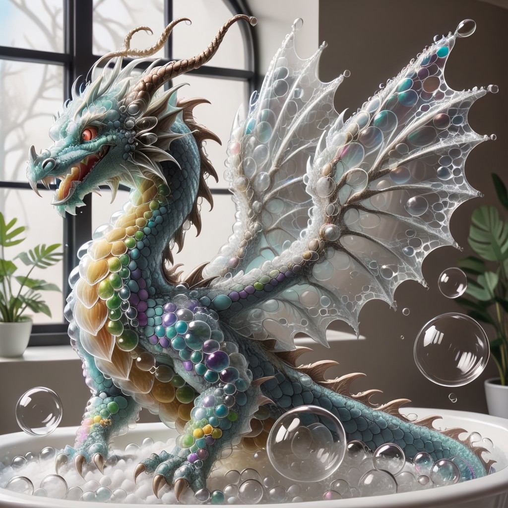 made_of_bubbles BREAK Transparent dragon made of clear bubbles, (colorful rainbow bubbles:1.4), clear bubbles wing, BREAK , bubble bath, bubble dragon in the tub,