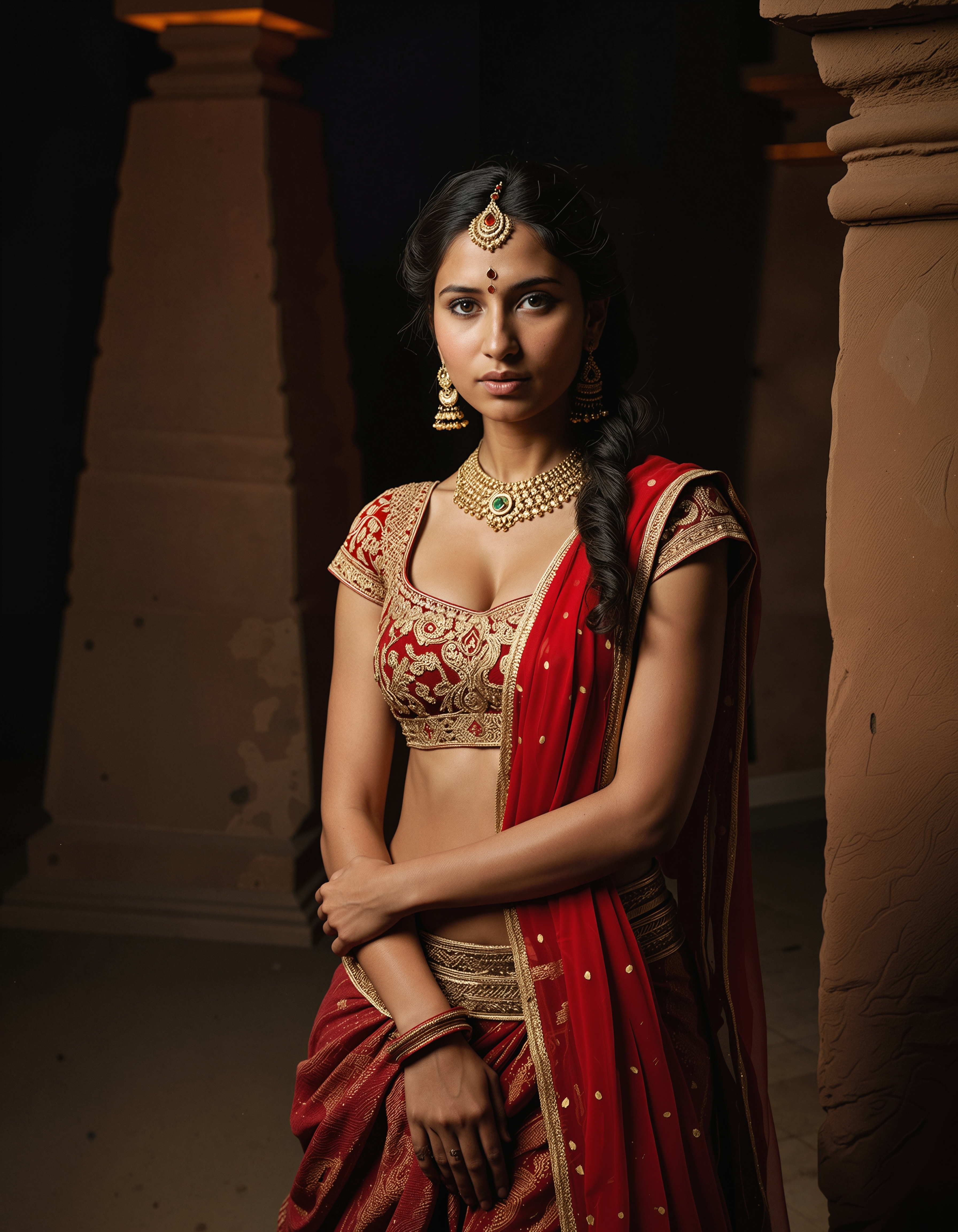 RAW full body analogue photo of a beautiful 25 years old woman, clear focus, high resolution image, (ukrainian woman) ,analogue portrait photo of a beautiful 25 years old Tamil woman, high resolution image, wearing traditional Indian clothes Lehenga Choli,low light, soft natural light, Rembrandt style light, Hasselblad DLSR camera, 200mm Zeiss lens, f/2.8,Sexy pose, erotic pose, exhibitionism ,Art studio, Natural hair,,low light, soft natural light, Rembrandt style light, Hasselblad DLSR camera, 200mm Zeiss lens, f/2.8 ,Sexy pose, erotic pose, exhibitionism, ,ancient pyramid in a cosmic desert