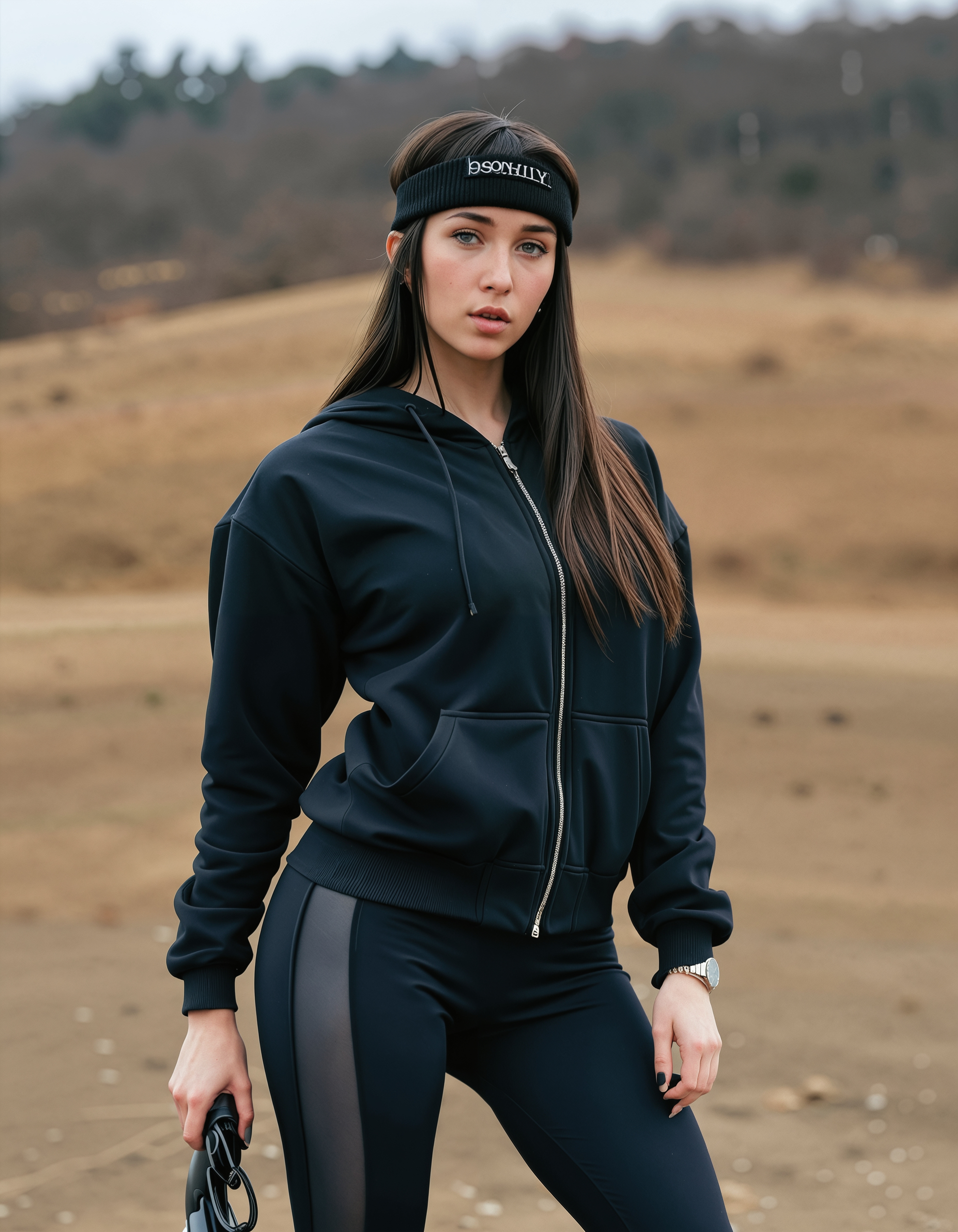 RAW full body analogue photo of a beautiful 25 years old woman, clear focus, high resolution image,,perfect face, sexy pose, wearing Gothic Streetwear, a black oversized hoodie, joggers, and high-top sneakers, accessorized with a beanie, perfect eyes, detailed eyes, detailed iris, realistic skin, absolute perfect tits, soft tits, natural tits, (Soft Mullet with Choppy Micro Bangs hairstyle:1.6),,low light, soft natural light, Rembrandt style light, Hasselblad DLSR camera, 200mm Zeiss lens, f/2.8, ,Sexy pose, erotic pose, exhibitionism, ,A historic battlefield with monuments and rolling hills