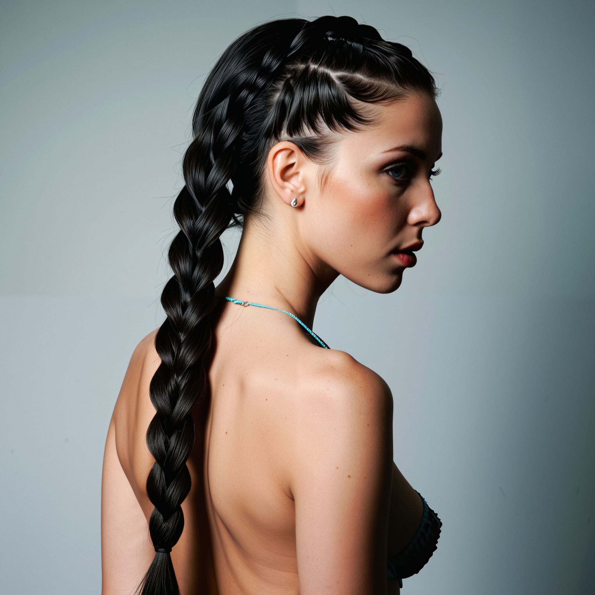 Rebecca Raven, RAW full body analogue photo of a beautiful 25 years old woman with dark hair, clear focus, high resolution image, <lora:Rebecca_Raven_SDXL:1.0>,Fairy: Whimsical tattoos, delicate rings, fairy necklaces, dreamy gaze, light makeup, fairy costumes, barefoot, minimal piercings, long, flowing., (pigtail-plait-hair:1.6),low light, soft natural light, Rembrandt style light, Hasselblad DLSR camera, 200mm Zeiss lens, f/2.8 ,Sexy pose, erotic pose, exhibitionism ,crystal cavern with rainbow reflections and glowing crystals