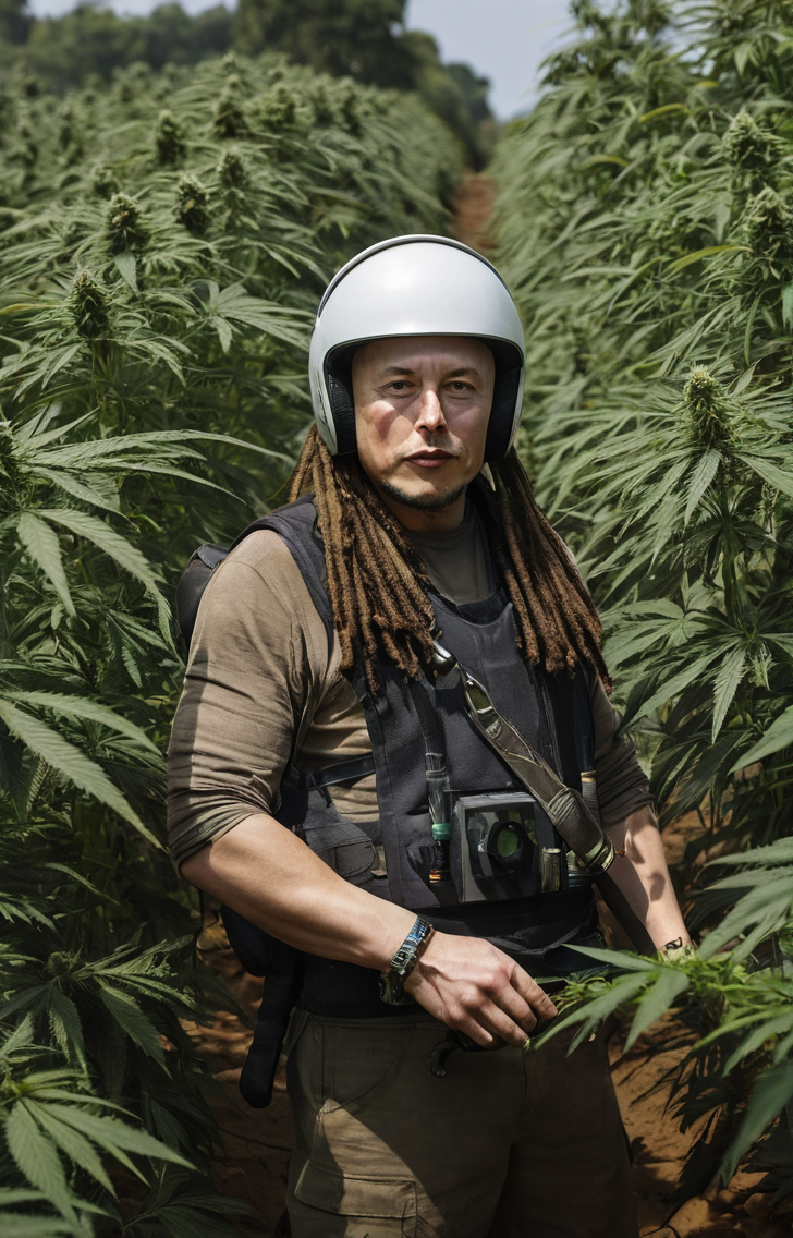 RAW Photography, national geographic documentation (Rasta ganja-farmer Elon Musk) with helmet standing in (cannabis plantation:1.1) on Mars planet,(sharpness in detail:1.1),Canon EOS 5D Mark IV,masterpiece,35mm photograph,(iconic photograph:1.4),(visual storytelling:1.2),film grain,award winning photography,vibrant use of light and shadow,vivid colors,high quality textures of materials,volumetric textures perfect composition,dynamic play of light,rich colors,epic shot,perfectly quality,natural textures,high detail,high sharpness,high clarity,detailed,photoshadow,intricate details,8kâââ