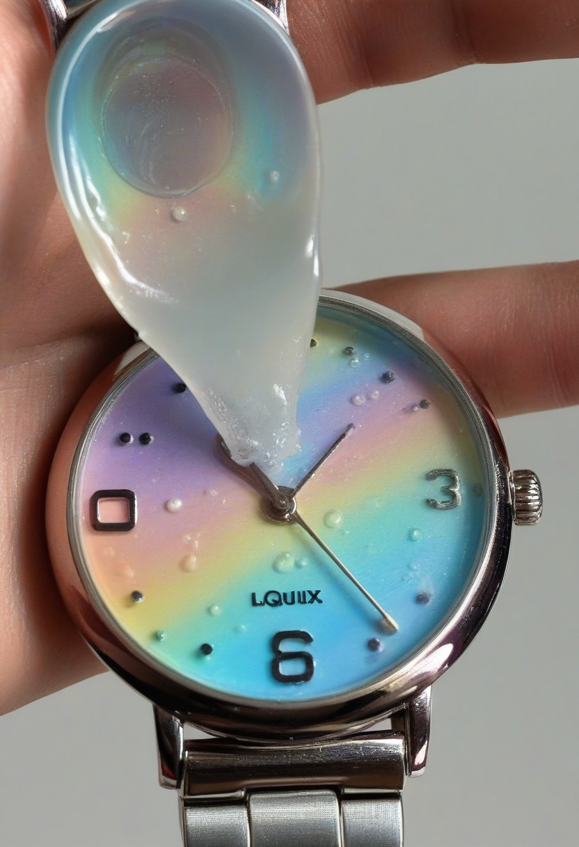 lazypos,aesthetic,extremely aesthetic,masterpiece,flowing,pool of liquid,overflowing,made of l1qu1dp34rl,metal,pearl,liquid pearl,pearlescent,pastel colors,rainbow,watch,no human,pocket watch,watch face,clock face,close up,macro photography,macro photo,liquid,filled,filled with liquid,liquid pouring from watch,oozing,<lora:liquidpearlXL_r1:1>,