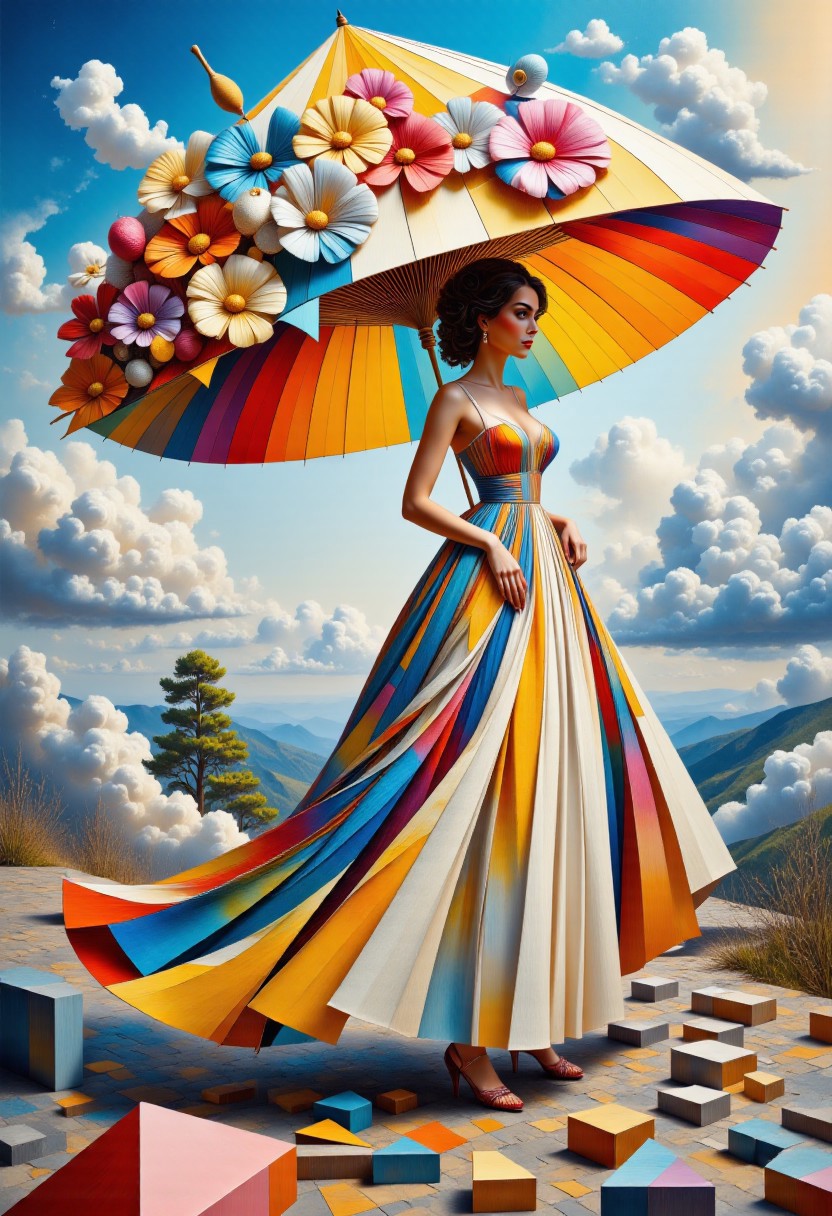 rococo lady with an umbrella made out of a huge elderflower