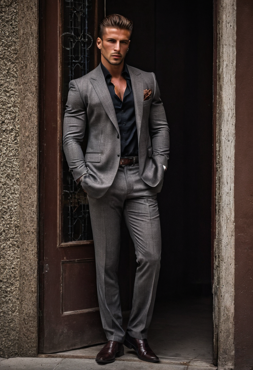 raw photo, full body, beautiful man, Mafia man, exudes confidence, brown hair