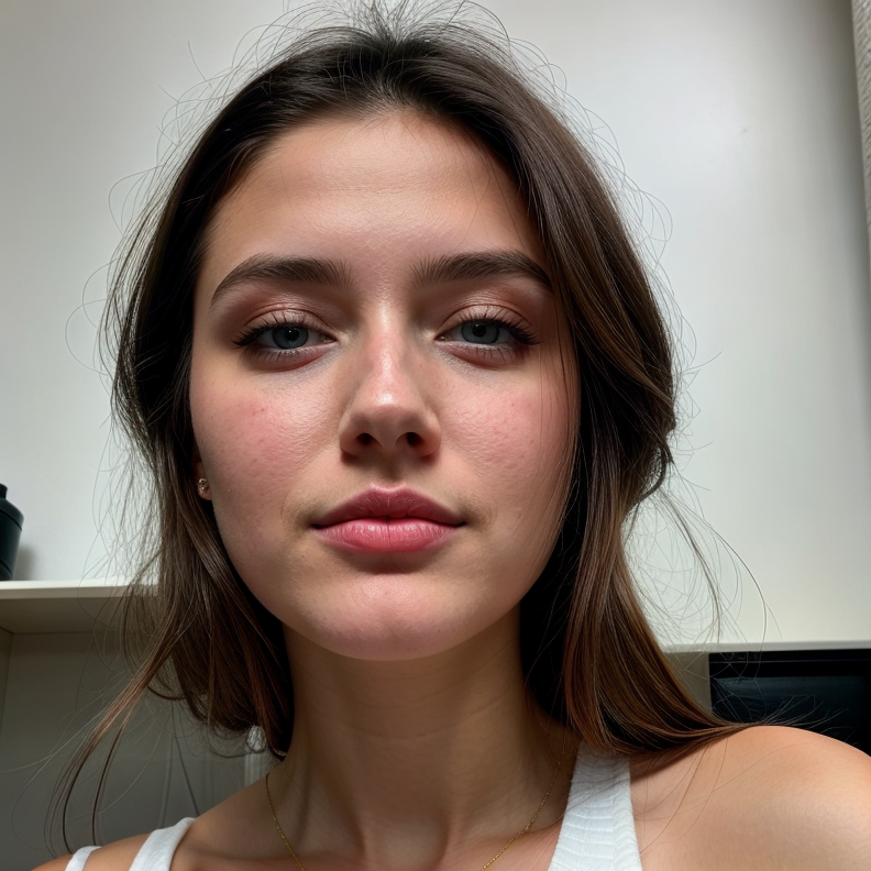 instagram photo, instagram filter, closeup face photo of 23 y.o Chloe in black sweater, sfw, cleavage, pale skin, hard shadows, (blue eyes), dark hair, medium breasts, medium length hair, attractive, <lora:MirrorSelfieLora:.6> <lora:add_detail:.7> , realistic skin, smooth skin, small pores, light foundation make up, flawless skin
