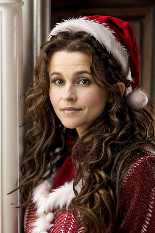 mrs santa claus, santas grotto, north pole, elves, snowmen, candy canes, snow, icicles, <lora:Helena_Bonham_Carter:1> 1girl, solo, a mature 40 year old hb1873c, brown hair, wavy,messy,up do, hair, masterpiece,best quality, detailed face
