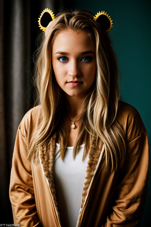 wearing a dinosaur costume <lora:Emily_Osment:1> e1873o, 1girl, solo, long_hair, blue_eyes, blonde_hair