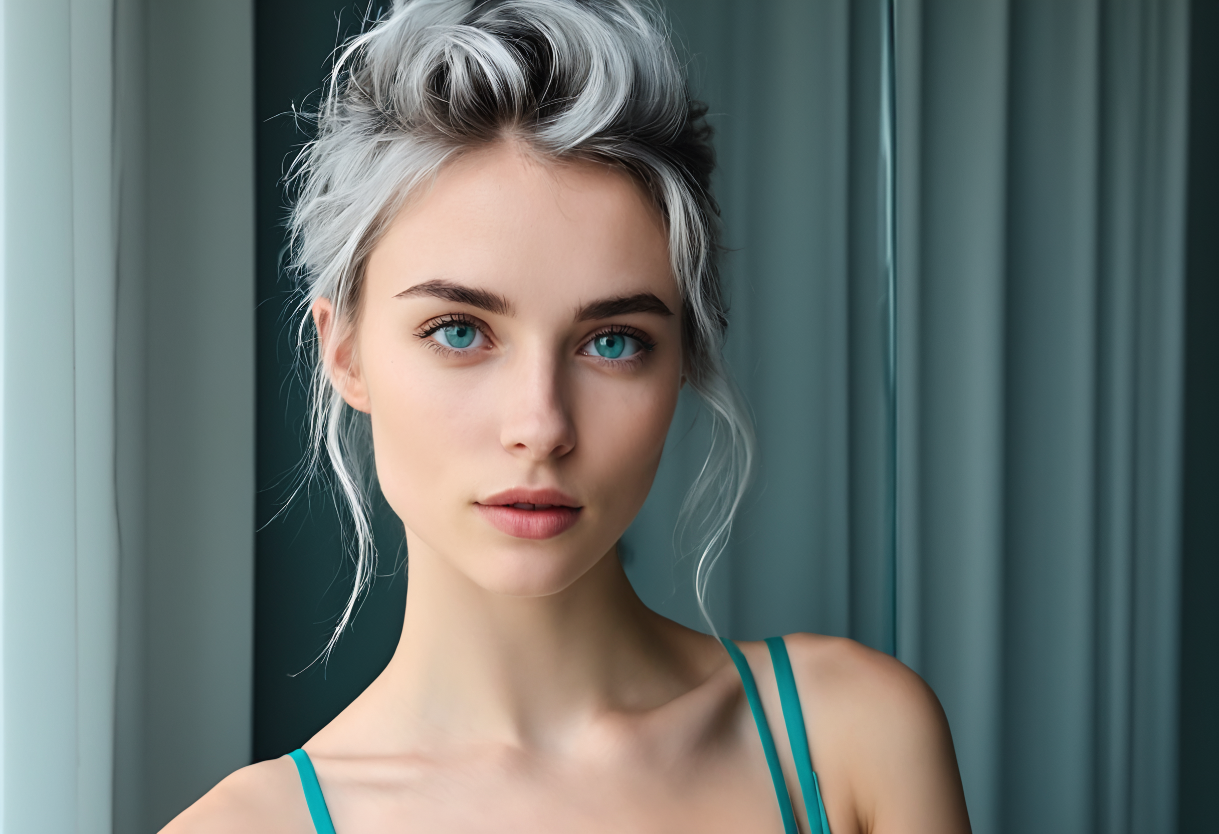 selfie, 1girl, solo, realistic 24 year old, flat chest, Grey messy hair, caucasian, teal eyes, fair skinned, best quality, RAW photo, subject, 8k uhd, high quality, photorealistic, prosperous, fair-skinned female, pale skin, affluent, affluent, Exquisite, shot on 70mm, luxurious, Through a window shot <lora:selfieXLrd:0.8>