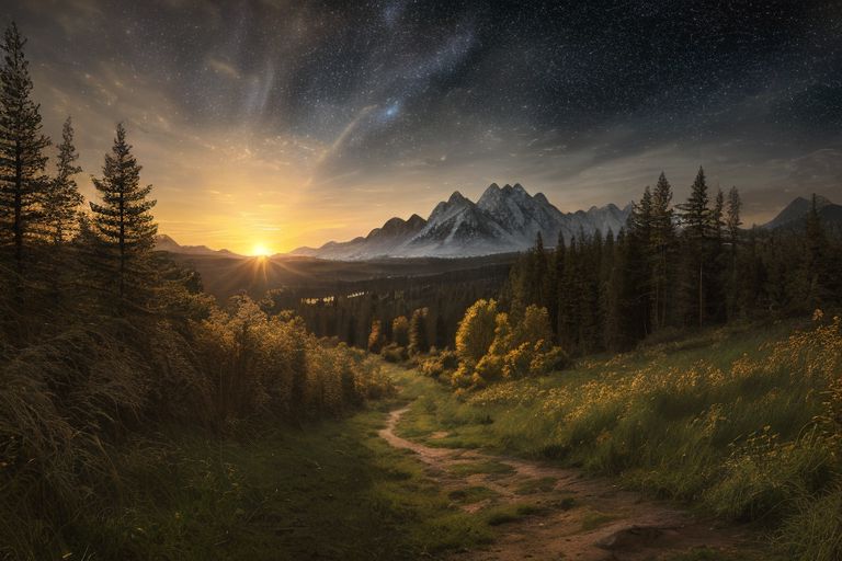 landscape, natural lighting, soft lighting, sunlight, HDR (High Dynamic Range), Adolph Menzel, Maximum Clarity And Sharpness, Multi-Layered Textures,nightsky background,