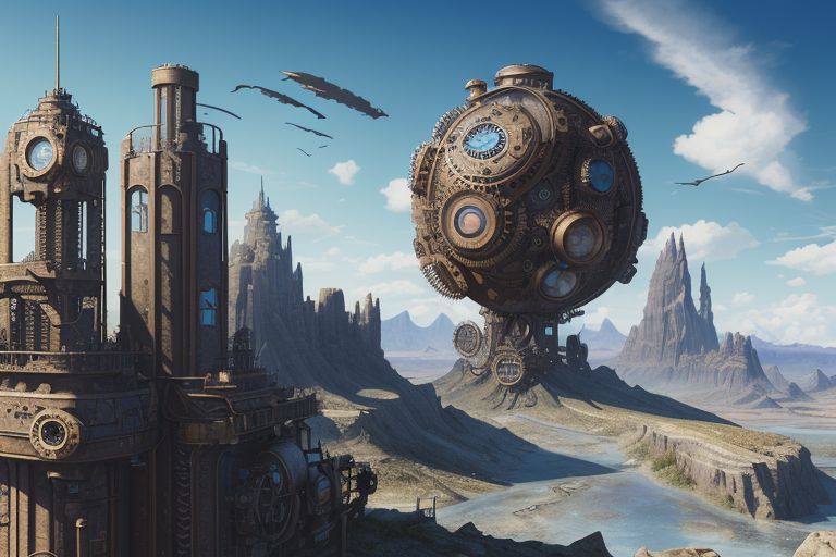 steampunk landscape, futuristic auto, HDR, maximum clarity and sharpness, multi-layered textures, bluesky background, artstyle